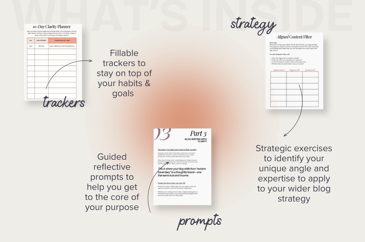 | - 10-day blog clarity planner with focused prompts to help you realign your direction